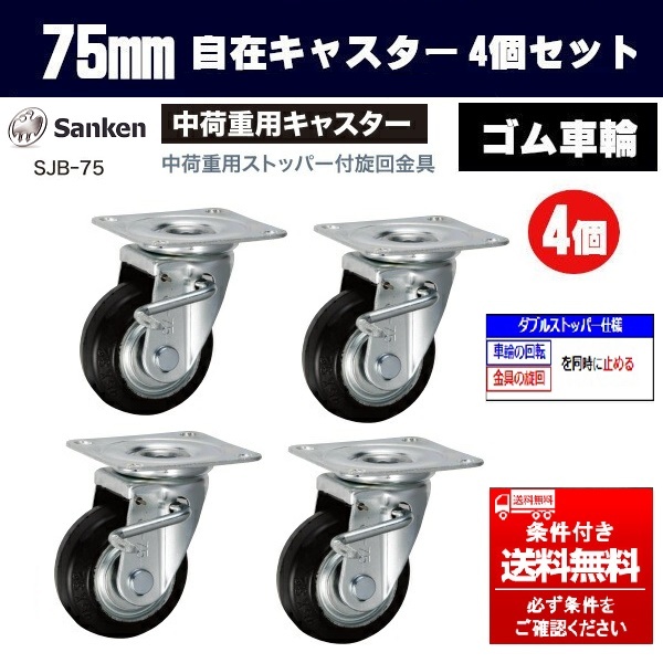 - ③ 岐阜産研工業 UKAI/ウカイ SJB-75 衝撃に強い中荷重用自在キャスター ダブルストッパー仕様 条件付送料無料/個人宅最寄福山営業所止