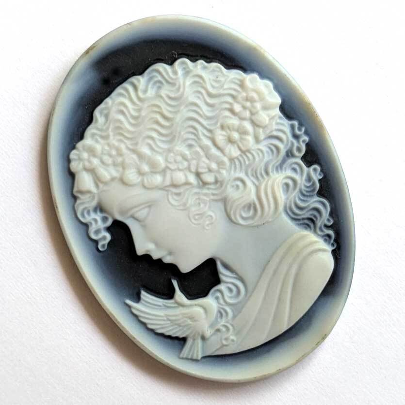 - ■gen_035 カメオ ストーン 天然石 ルース 美品 希少 メノウ 瑪瑙 ★ ブローチ ペンダント ネックレスに! 美人 女性 横顔 鳥