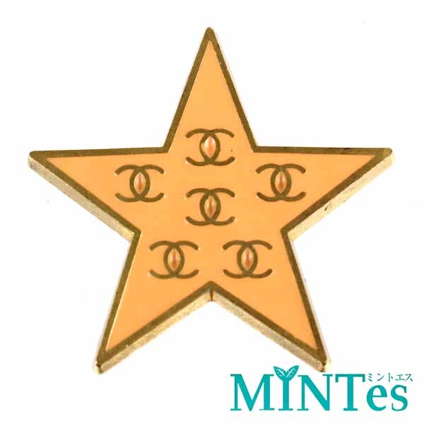 - Chanel シャネル ココマーク スター ブローチ オレンジ×ゴールド金具 メタル アクセサリー ワンポイント レディース スタイリッシュ