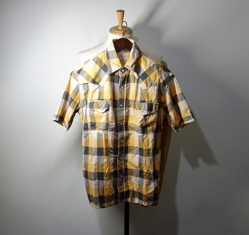 - TK ☆送料込み&匿名☆ 良品 フラットヘッド 半袖チェックシャツ 40 ブラック イエロー