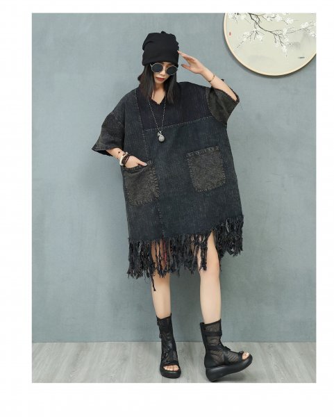 - gl 2508 ロングチュニック トップス 綿&麻 洋服ミックス アンティーク風 ロマンファッション 縫い合わせ 古い布