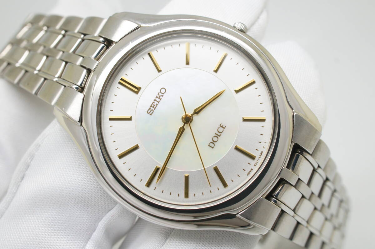 > H15●作動良好 SEIKO セイコー DOLCE ドルチェ 8J41-6030 1995年製 シェル文字盤 メンズ腕時計 シルバー お洒落 クォーツ