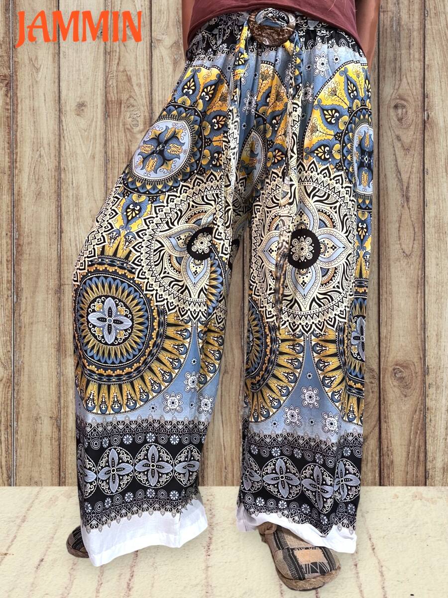 - アジアン花紋様柄パンツ アジアン エスニック ヒッピー ワイドパンツ