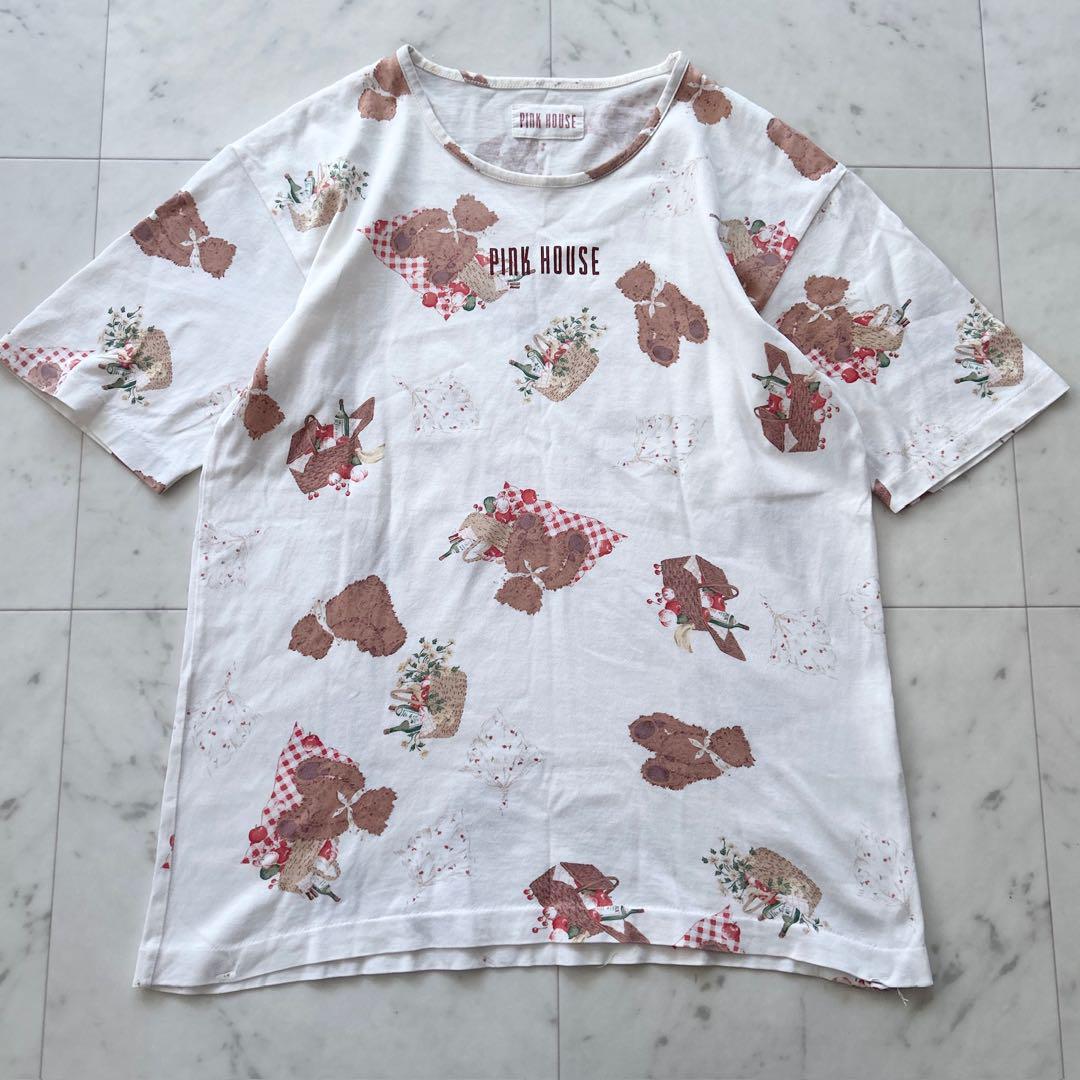 - ピンクハウス くまちゃんプリント Tシャツ カットソー 半袖 ロゴ入り フリーサイズ