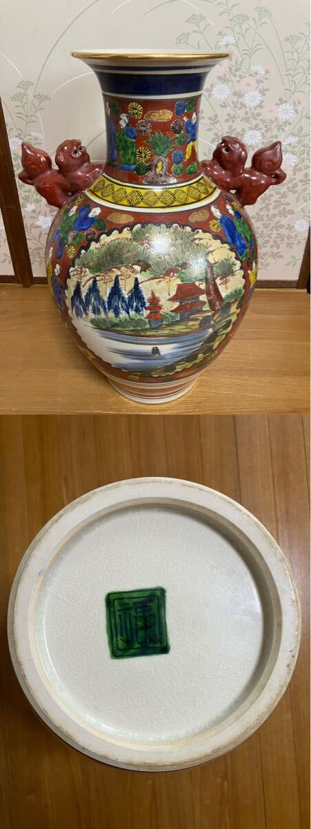 - 九谷焼 四角福 金彩色絵人物図 飾壷 大壺 大花瓶 高さ約50㎝ ★0731