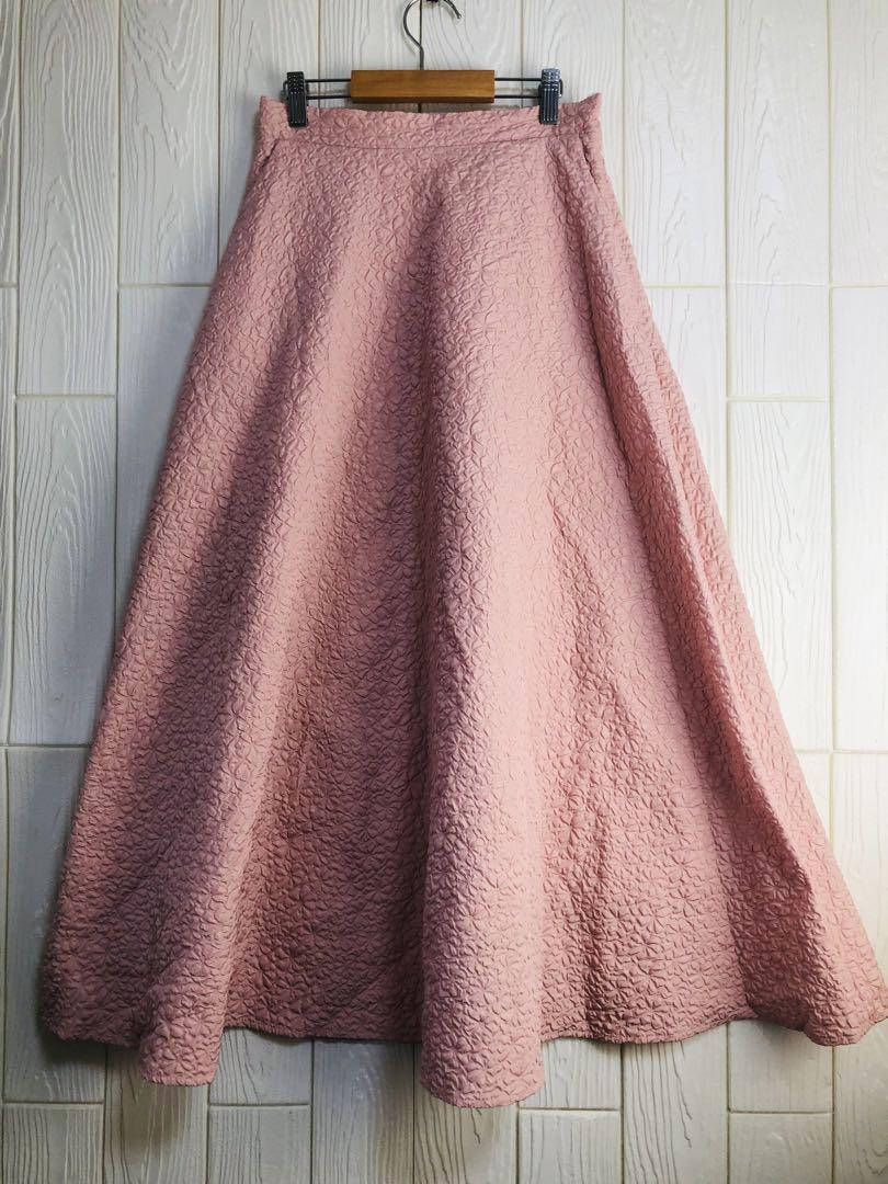 - ピンク フレアスカート ウエストゴムジッパー付64cm丈87cm