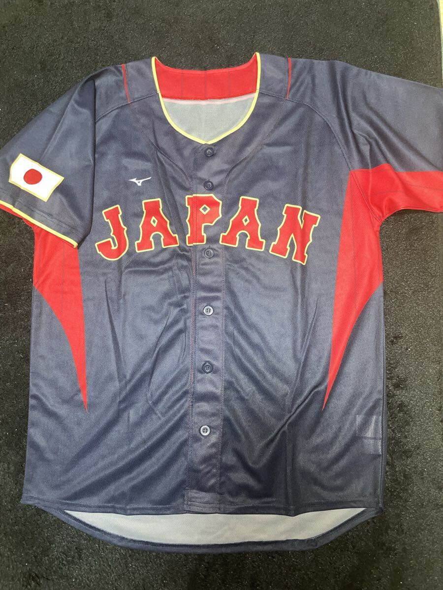 - 即決 送料無料 野球 日本代表 侍ジャパン ユニフォーム ミズノ製 サイズ表記なし 昇華プリント WBCロゴ入り ビジター ネイビー レッド 紺赤