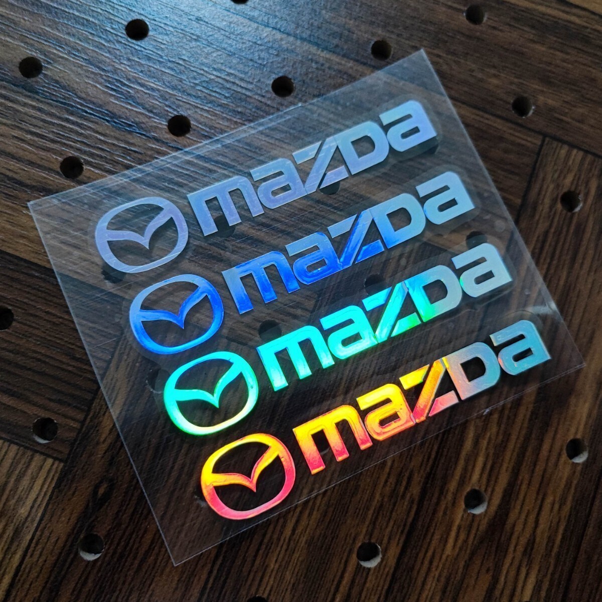 > マツダ メッキ調 ホログラムステッカー レインボー 4P■ CX-3/5/7/8 デミオ アテンザ アクセラ ロードスター RX-378 MAZDA3 プレマシー
