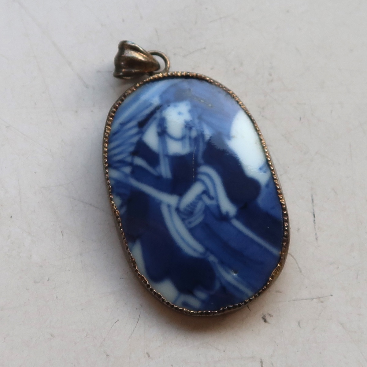 - SILVER 刻印 古い 陶器 焼き物 ネックレス ペンダント ヴィンテージ アクセサリー シルバー 中古