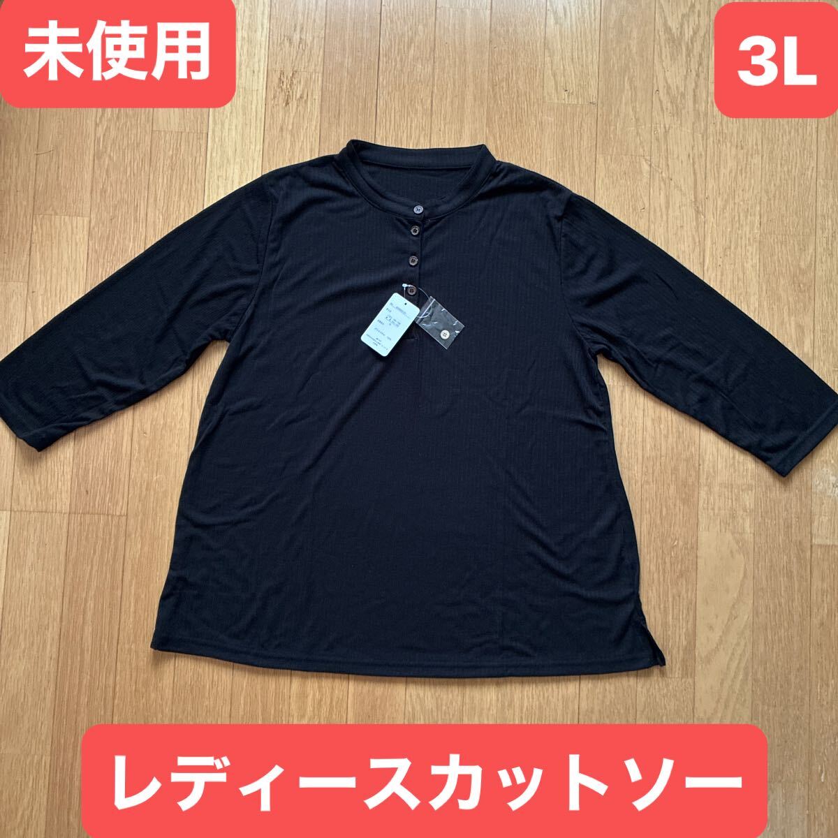 - 未使用 サイズ3L レディース カットソー 7分袖 ブラック 黒