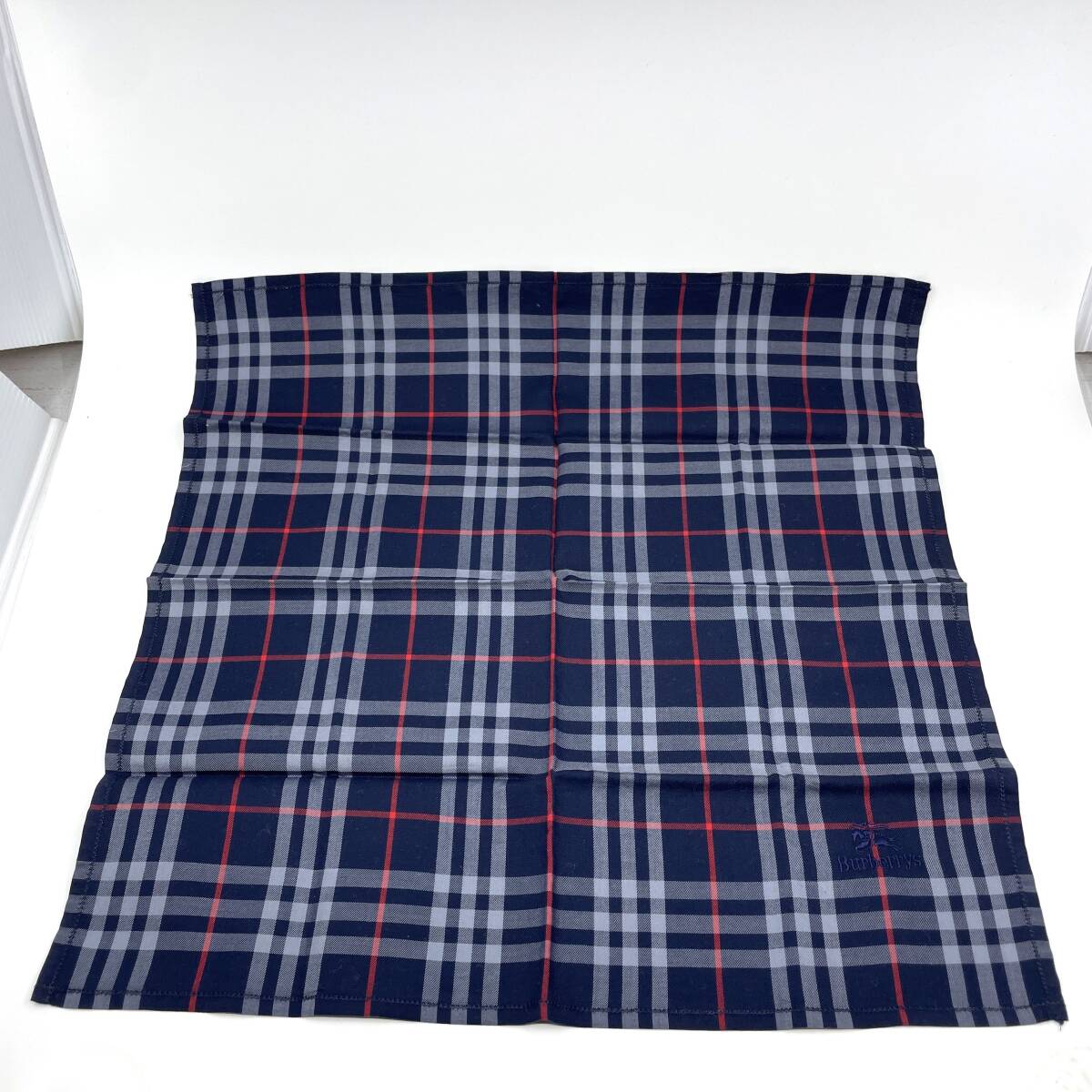 - Burberrys バーバリーズ ハンカチ バンダナ ネイビー系 ホースロゴ ノバチェック ロゴ刺繍 総柄 ラグジュアリー エレガント