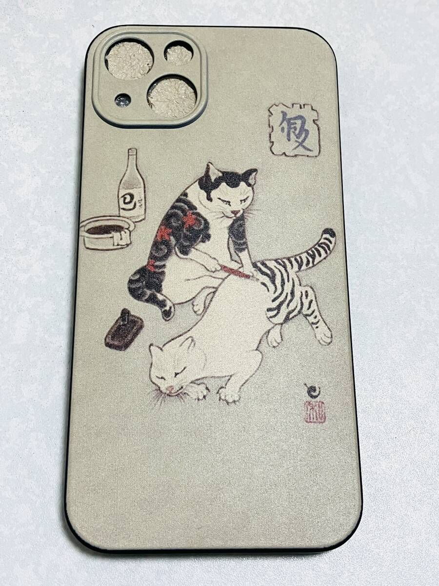 - 新品■iPhone13 シリコン カバー 浮世絵風 彫り師 猫■スマホカバー iPhone13カバー タトゥー 和彫り タトゥ ネコ ねこ 昭和 和風 レトロ