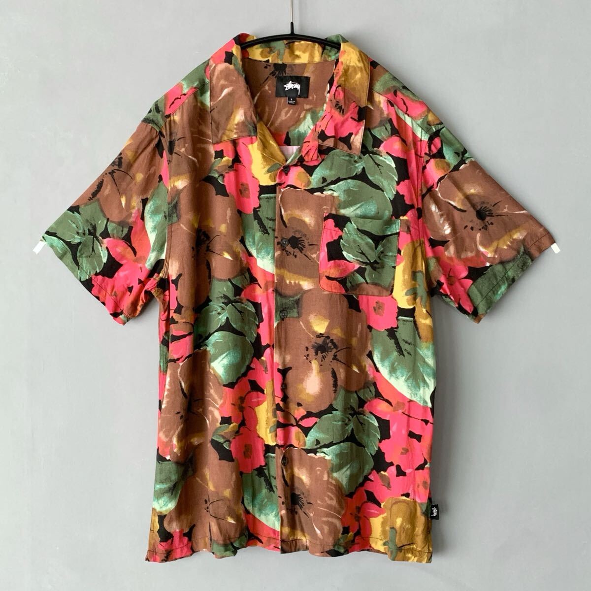- Stussy アートプリント アロハシャツ 半袖 ステューシー レーヨン L
