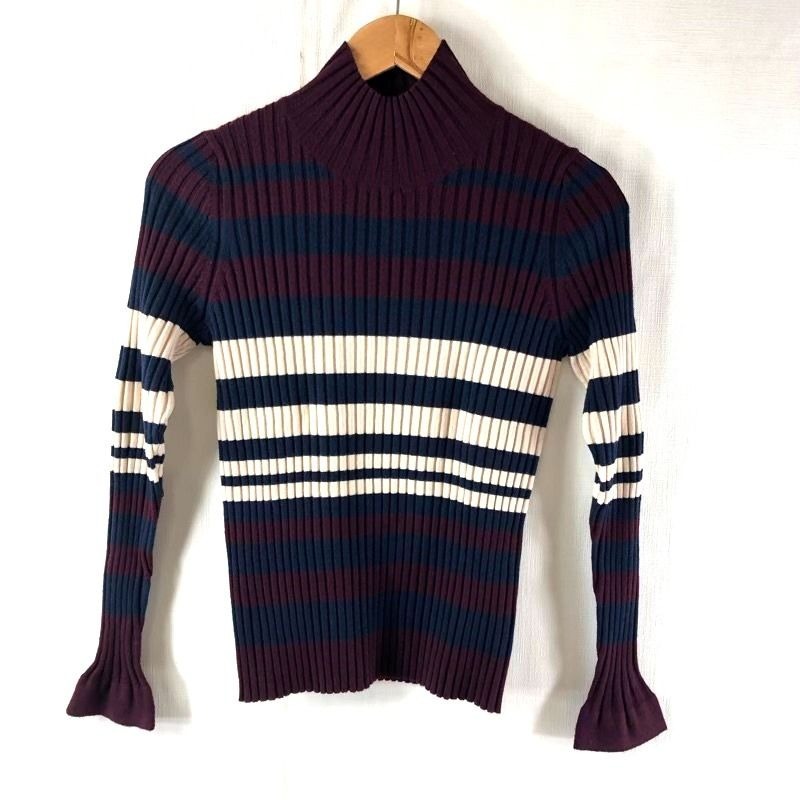 > ドゥクラッセ DoCLASSE ニット カットソー 長袖 ボーダー ボルドー 紺 白 S/Mサイズ 2025061700070