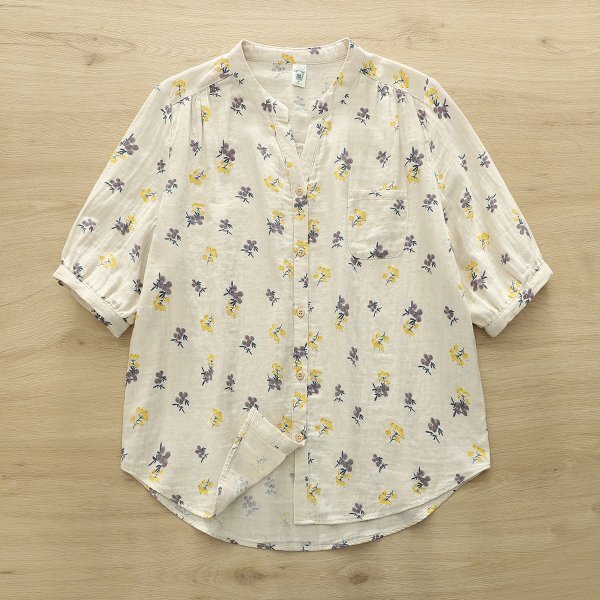 - c 2508 ダブルガーゼ フリーサイズ チュニック トップス ナチュラル 綿100% 通気性肌触り抜群 サラサラ ゆったり 花柄5