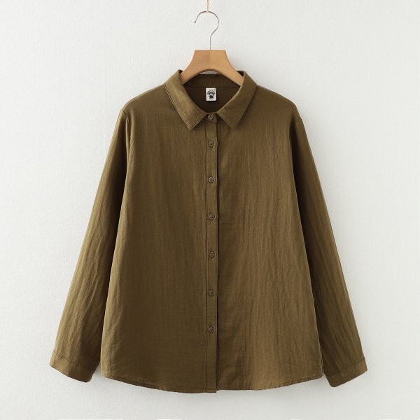 - c 2508 ダブルガーゼ ワイシャツ フリーサイズ チュニック トップス ナチュラル 綿100% 通気性肌触り抜群 サラサラ ゆったり 苔色