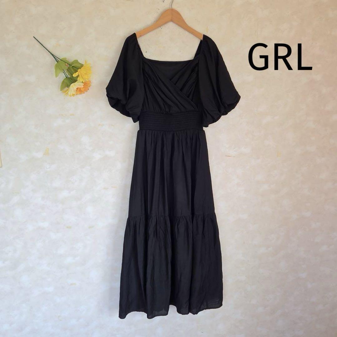 - グレイル GRL ワンピース XS相当 カシュクール ティアード ぼわん袖 黒