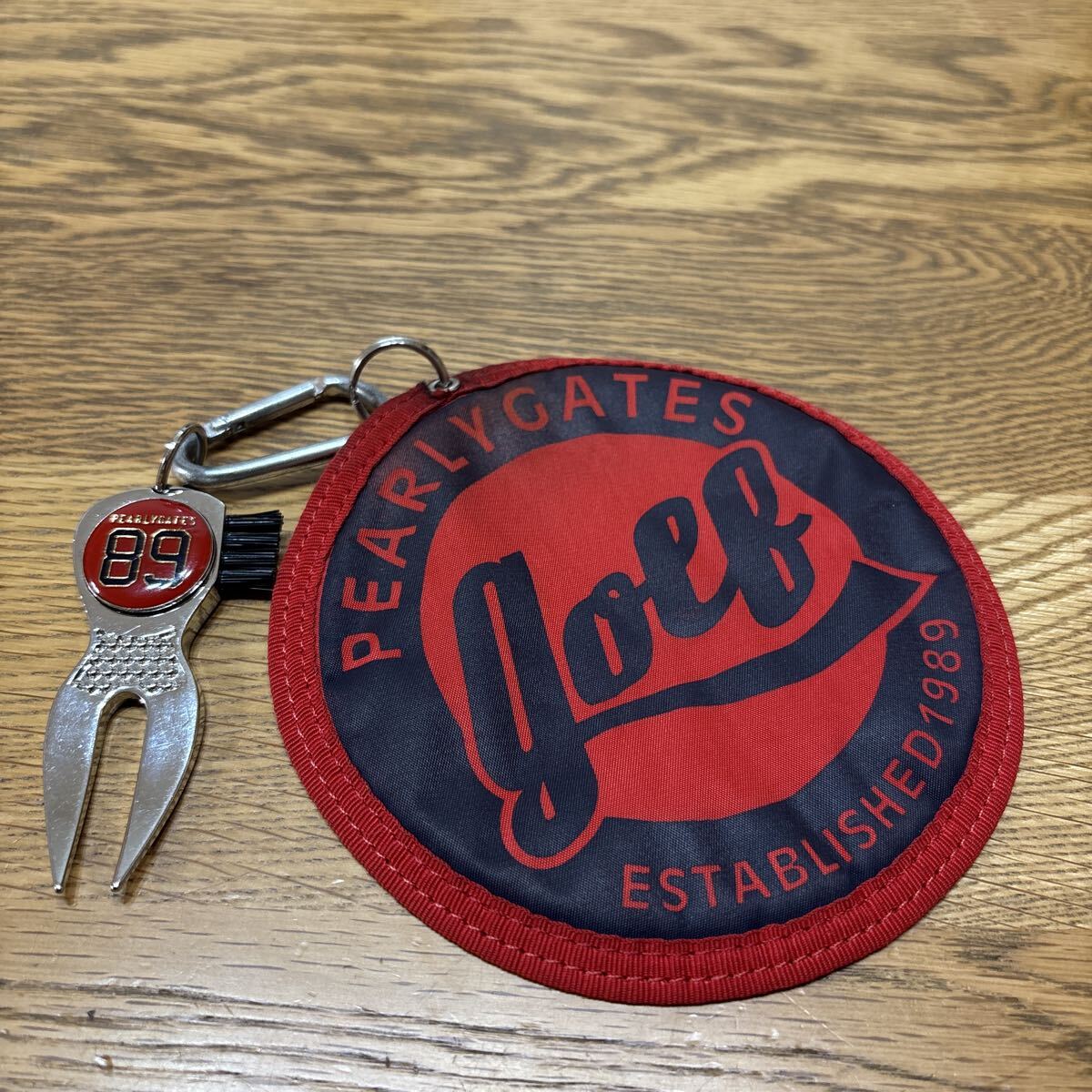 - パーリーゲイツ マーカー付グリーンフォーク+ボールクリーナー 赤系 送料込