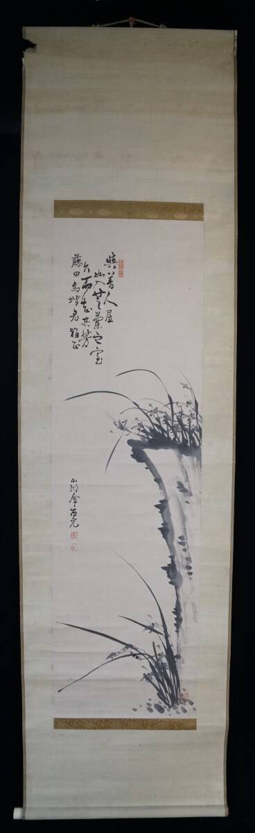 - 真作◆鳳】朝鮮書画家◆ 金應元 (金応元)(小湖) ◆水墨画◆蘭岩図◆紙本◆掛軸◆肉筆保証258-33検:李朝 韓国 李氏朝鮮 書道山水