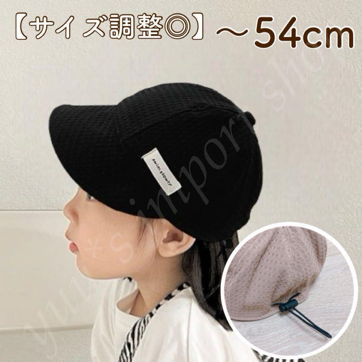 - 帽子 キッズ キャップ 黒 春夏 秋冬 つば広 UVカット 54 52 日除け 調整可能 男の子 女の子 子供 韓国子供服