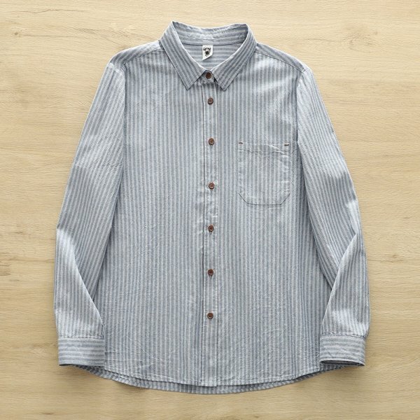 - c 2508 フリーサイズ ワイシャツ チュニック トップス ナチュラル 綿100% 通気性肌触り抜群 サラサラ ゆったり ストライプ柄1
