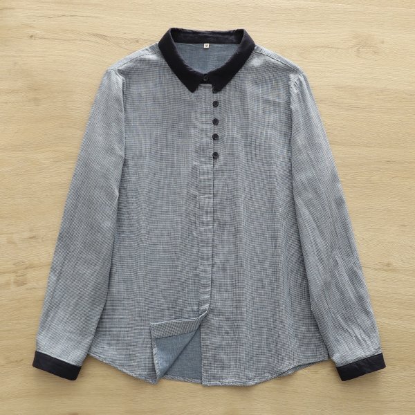- c 2508 ダブルガーゼ フリーサイズ ワイシャツ チュニック トップス ナチュラル 綿100% 通気性肌触り抜群 サラサラ チェック柄 ネイビー