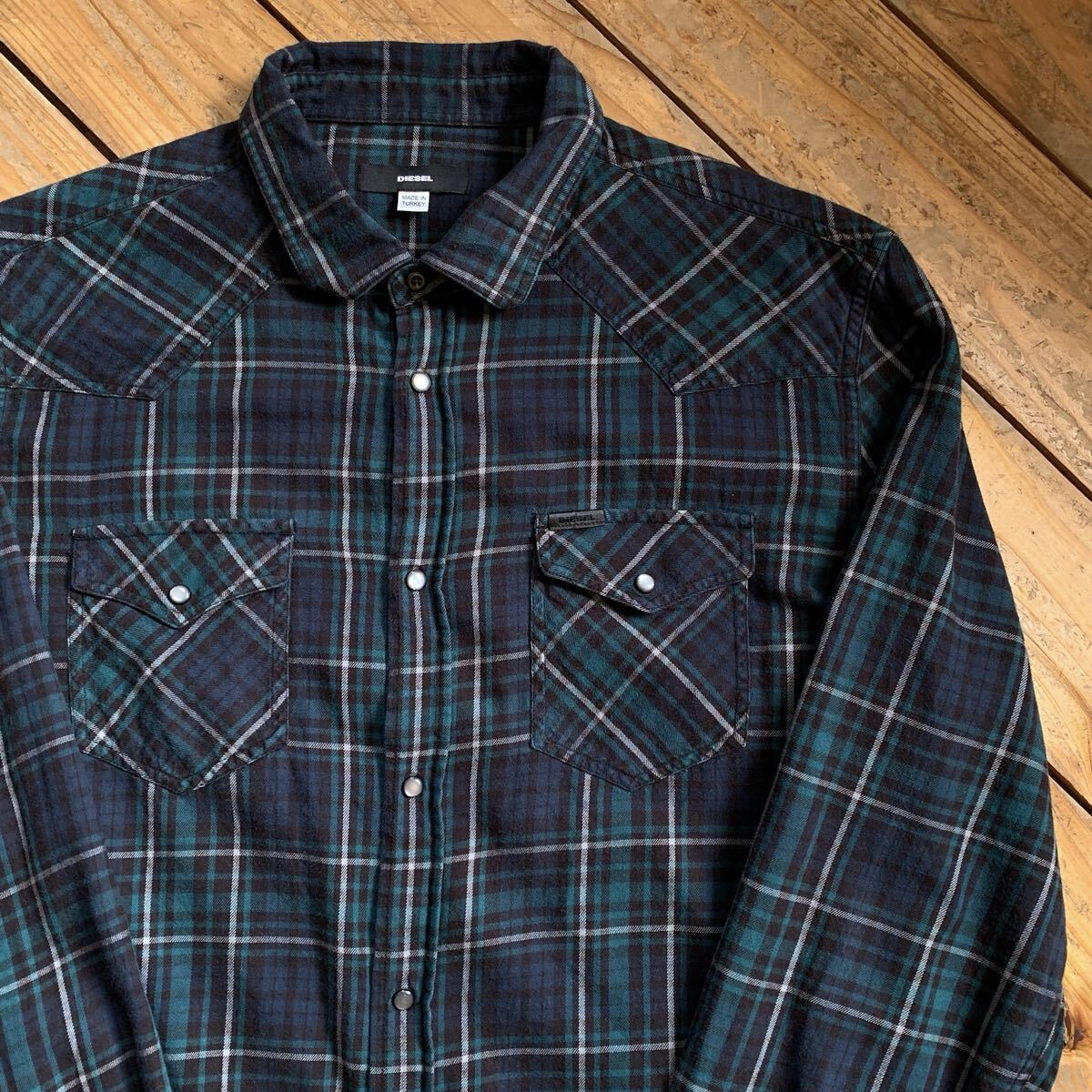 - USA古着 DIESEL ディーゼル 長袖チェックシャツ レディース Lサイズ グリーン カジュアル トップス スナップボタン ロングスリーブ T3130
