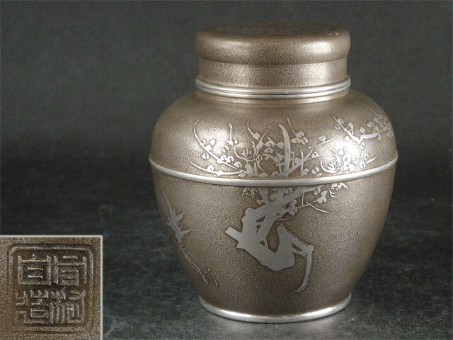 - 間村自造 四君子文 古錫 茶入 茶壺 茶心壺 重さ約271g