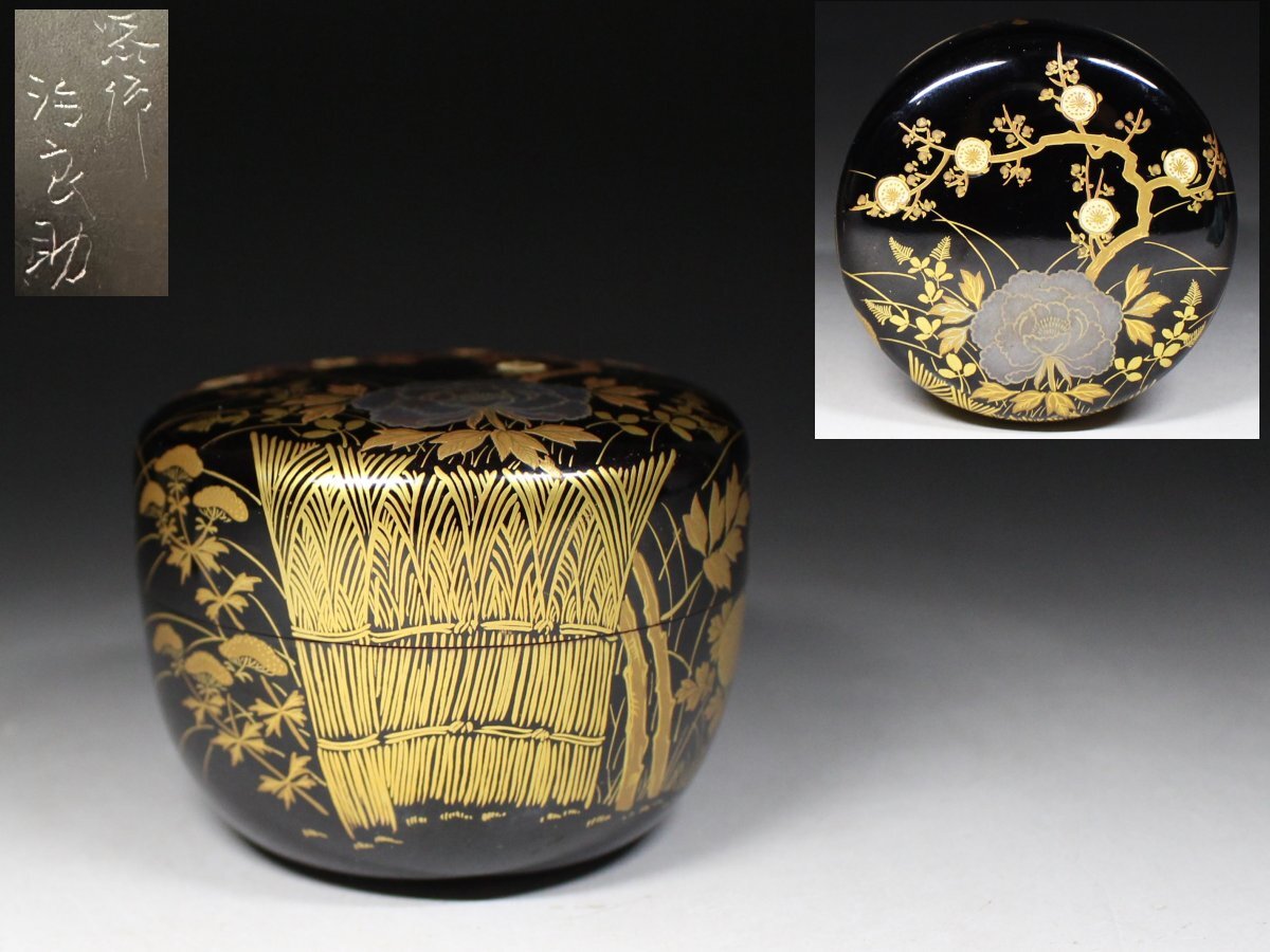 - ▲茶道具・塗師 綿貫治良助 作・四君子蒔絵・大棗・金蒔絵・草花土筆・棗・合わせ箱▲se215h