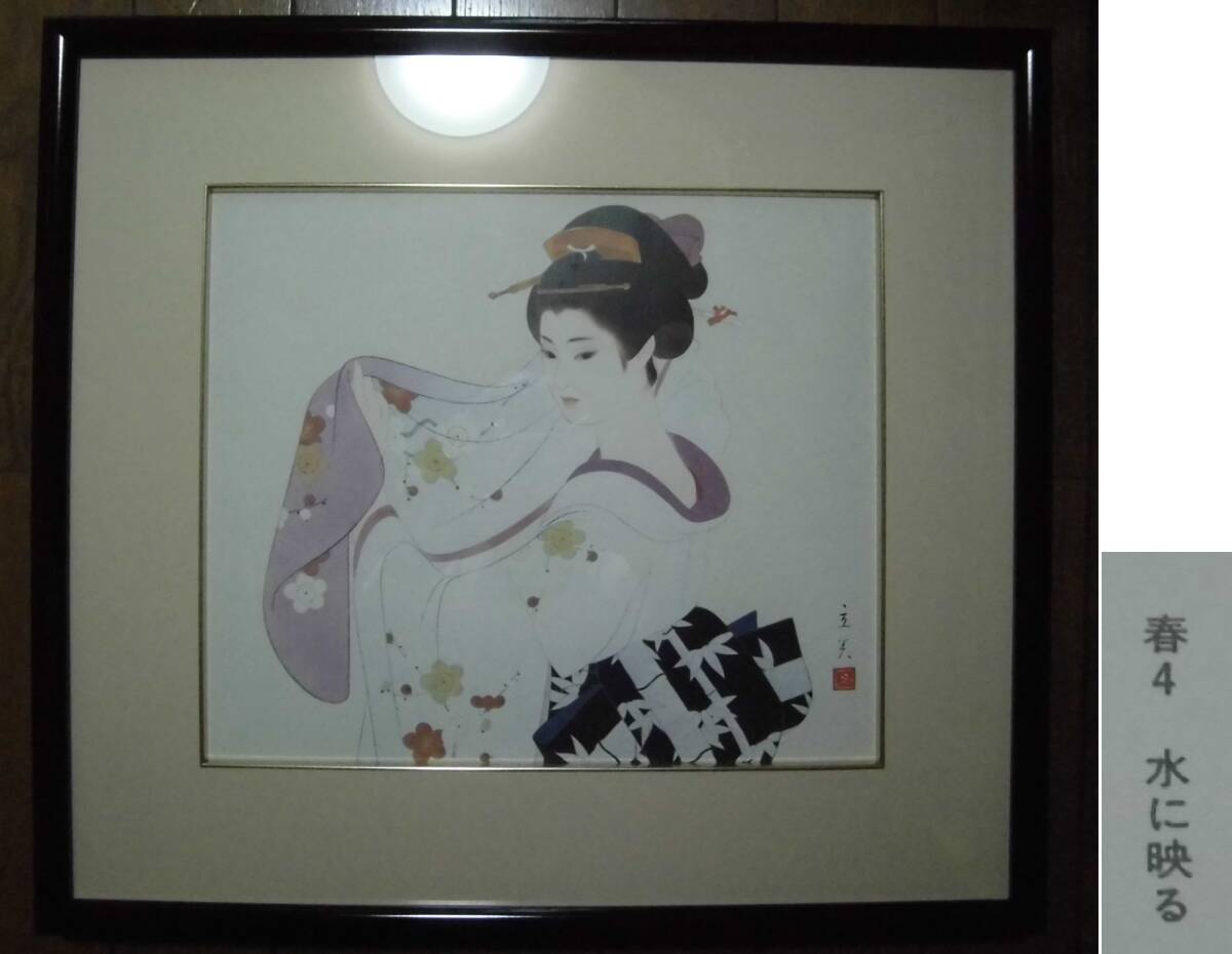> 額装 美人画 志村立美 水に映る 硝子 木製 額縁入り 1000部限定 オフセット印刷 外箱入り 日本画 浮世絵