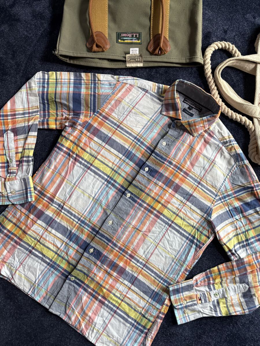 - 超美品 定価17,600円 TOMMY HILFIGER トミーヒルフィガー 高品質オックスフォード素材 マドラスチェック 襟ホリゾンタル 長袖シャツ sizeL