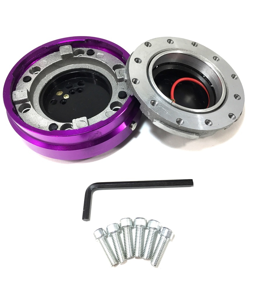 > クイック リリース ステアリング ボス 薄型 パープル 紫 スリムタイプ 25mm 脱着式 ハンドル 盗難 防止 汎用品