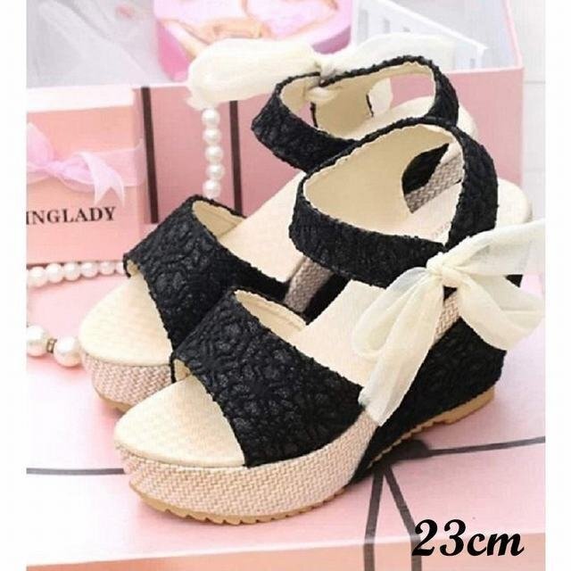 - LRM3137★エスパドリーユ レディース レディースシューズ 紐靴 厚底 太ヒール 身長UP キュート 仕事 通勤 美脚 通気性 カジュアル ブラック