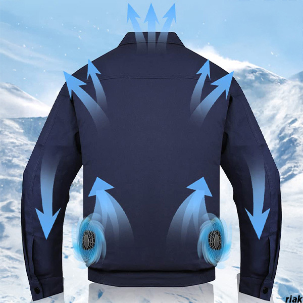 - 【パワフルモーター搭載で、低騒音ながらしっかり風量を確保】 空調作業服 長袖ファン付き 作業着 冷却 熱中症対策 男女兼用 ブルー 2XL