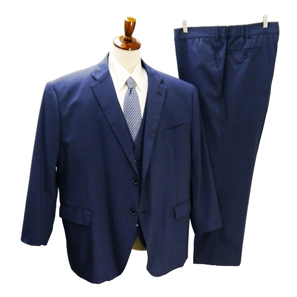 ・春秋冬対応。ベストあり。2つボタンシングル。背抜き。センターベント。フラップポケット。ネーム刺繍なし。開き見せ。大きいサイズ。