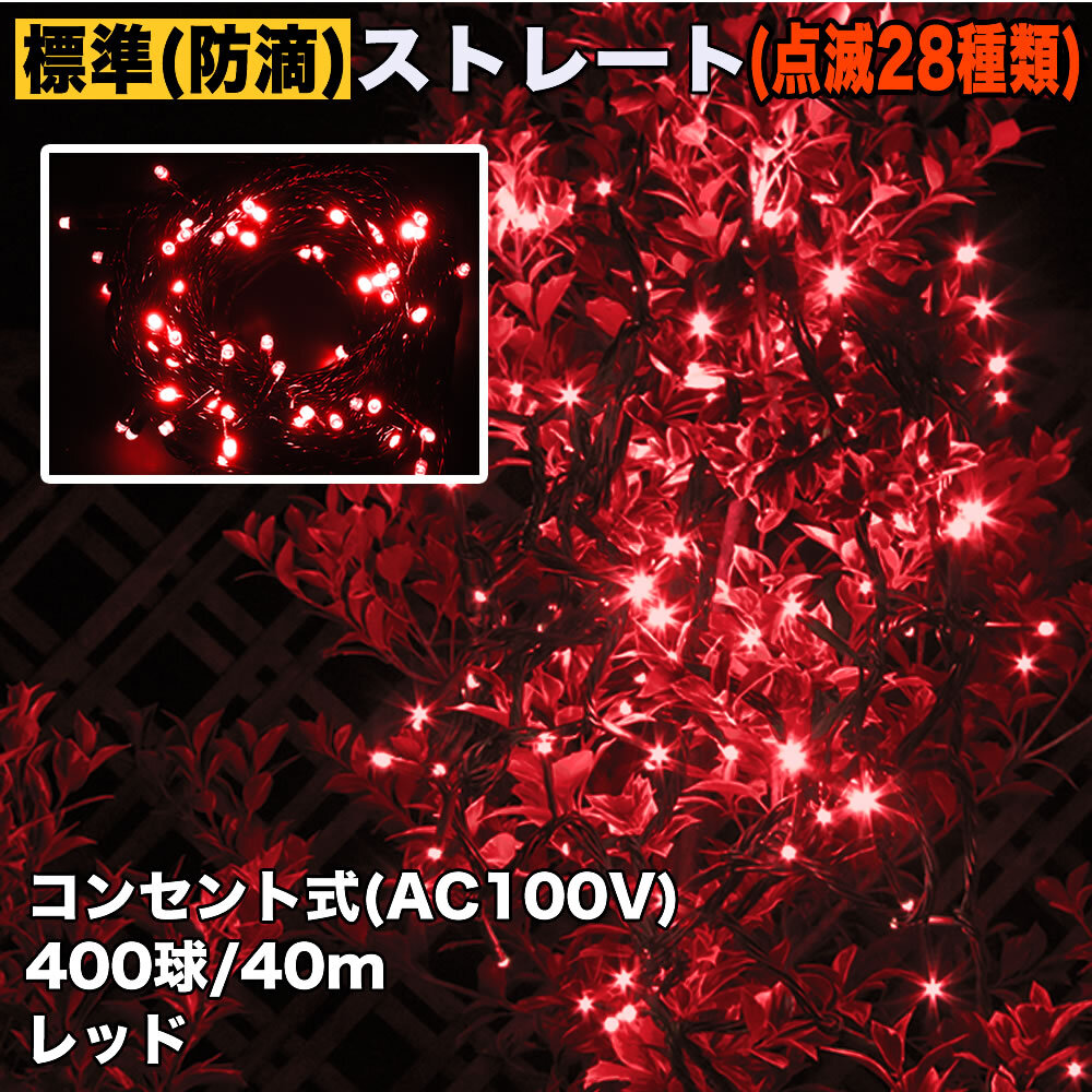 - クリスマス 防滴 イルミネーション ストレート ライト 電飾 LED 400球 40m レッド 赤 28種点滅 Bコントローラセット