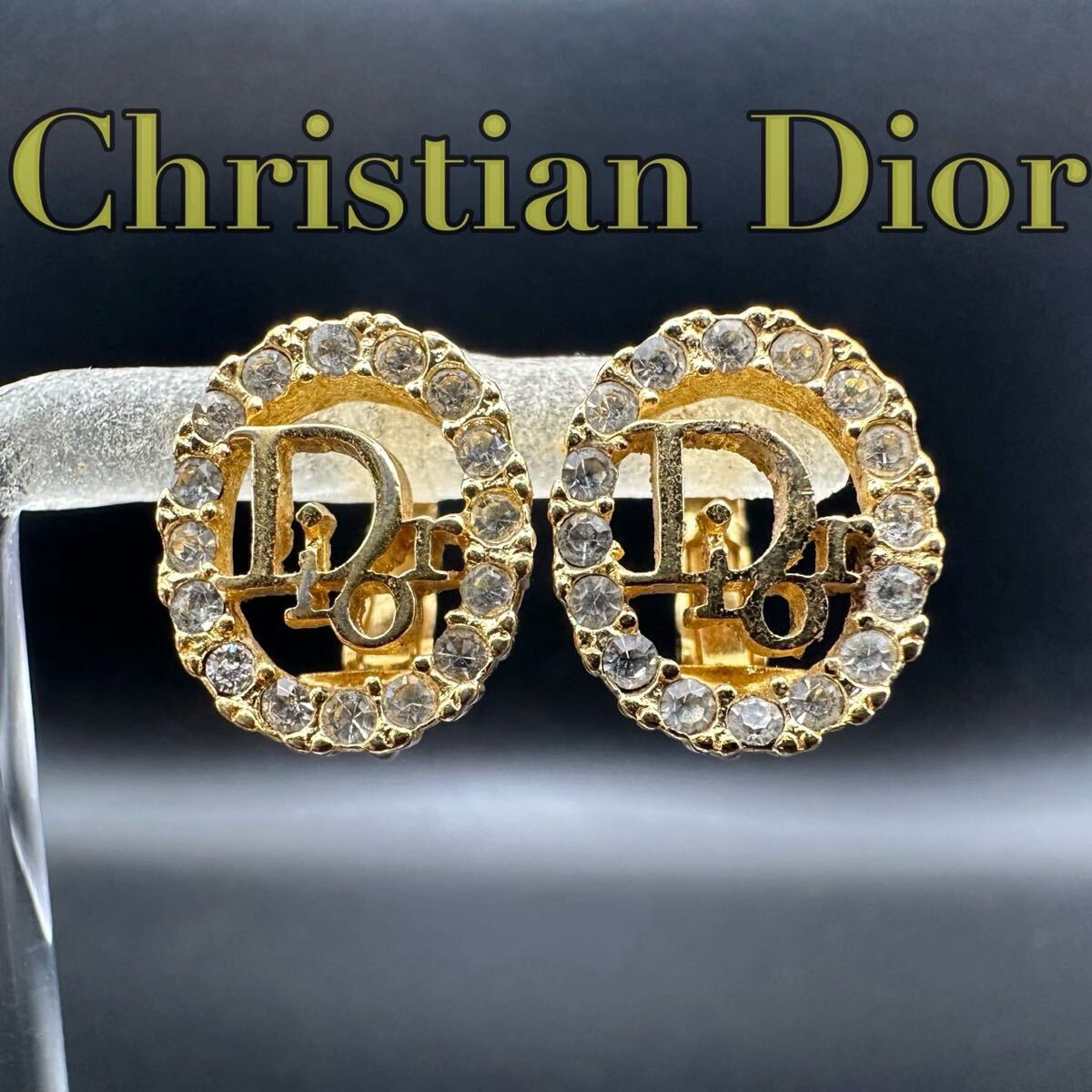 - 極美品 Dior イヤリング CD ロゴ ラインストーン 希少 刻印 1196