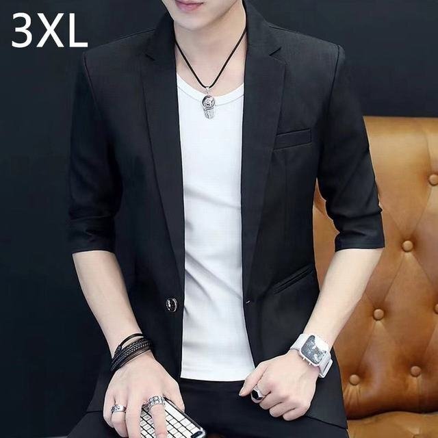 - メンズテーラード ブレザー メンズ おしゃれ ジャンパー アウター メンズトップス スーツ 七分袖 スーツ薄手 スリム ブラック3XL