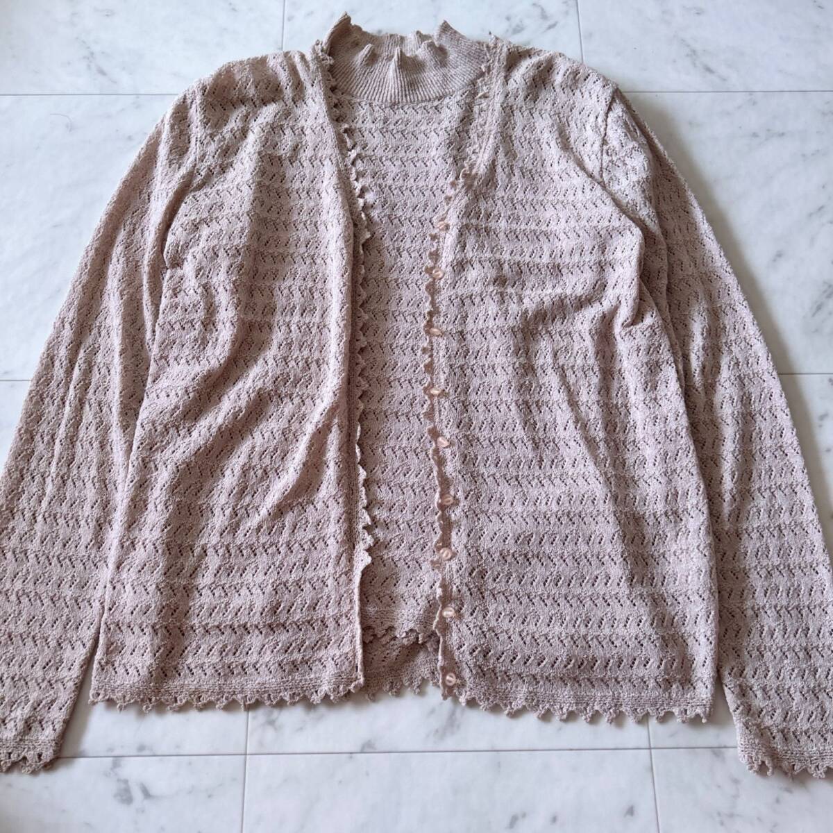 - インゲボルグ ニットアンサンブル カーディガン ピンクベージュ Mサイズ 上品 レース調
