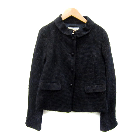 - ルージュフォンセ Rouge Fonce ジャケット ブレザー ミドル丈 総裏地 シングルボタン 36 S 紺 ネイビー 黒 ブラック /SY24 レディース