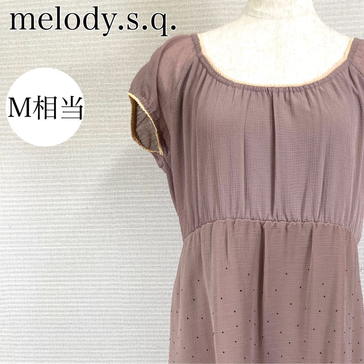 > 【AA4120】 melody.s.q. メロディースクウェア M相当 ワンピース 裏地有り 刺繍プリント アームレット ブラウン系 ひざ丈 ウエスト切り替え