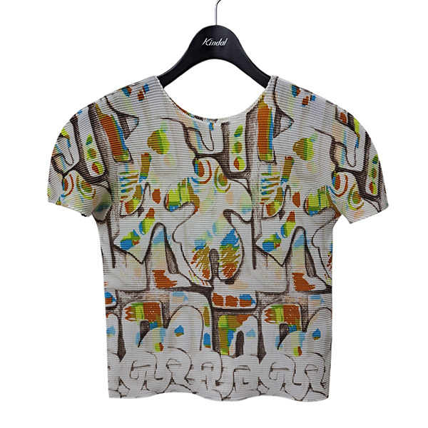 - ミーイッセイミヤケ me ISSEY MIYAKE 24SS 総柄プリーツTシャツ MI41FK796 ホワイト×ブラウン×グリーン 8047000121733