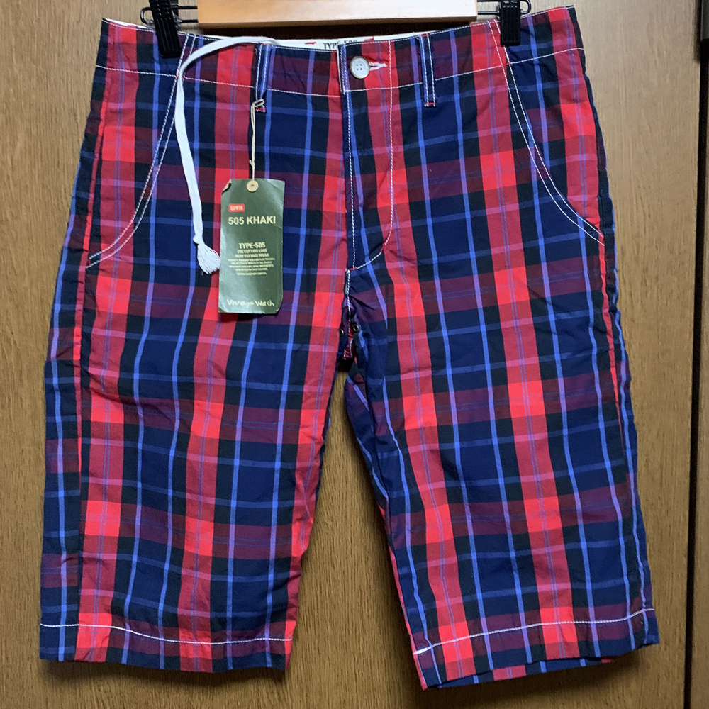 > M【EDWIN|ハーフパンツ】エドウィン K90504 レッド×ネイビー チェック柄 尾錠 ショートパンツ 未使用