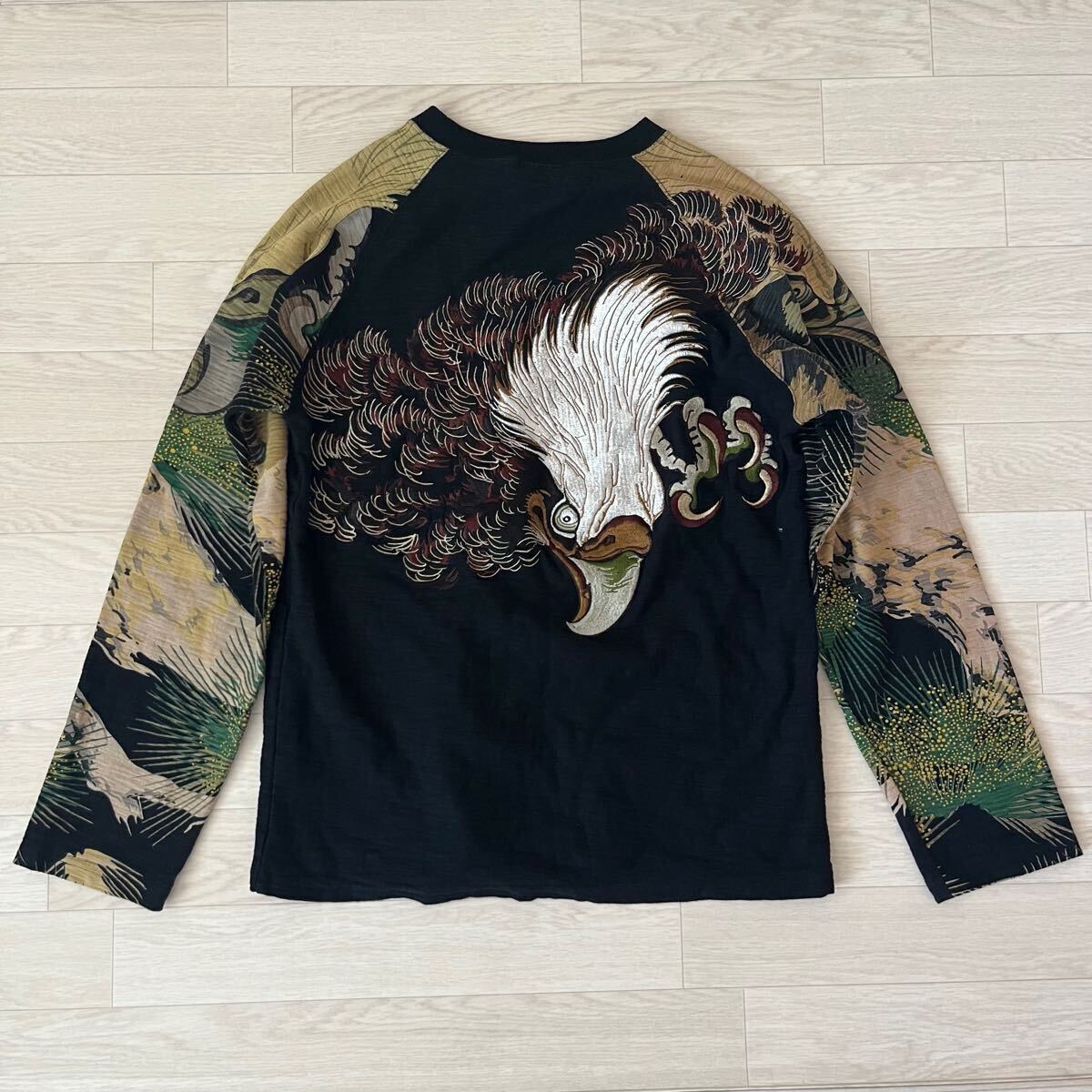 > 【圧巻のバッグ刺繍】花旅楽団 SCRIPT 鷲柄 長袖Tシャツ アメカジ M 男 古着 大人のカジュアル メンズ 紳士 男性 秋冬 バイカー ロンT