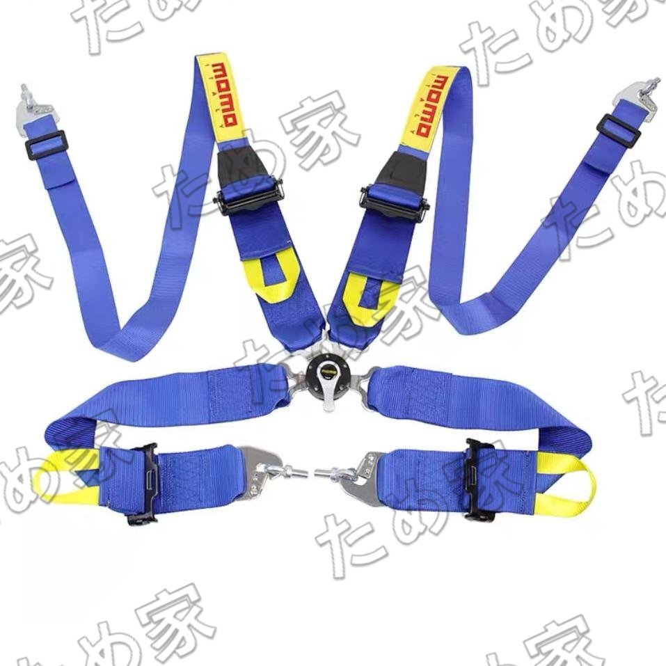 - 最新◆4点式 シートベルト MOMO 安全ベルト レース専用 腰ベルトアジャスター付 スパルコ 耐久レースに◆ブルー