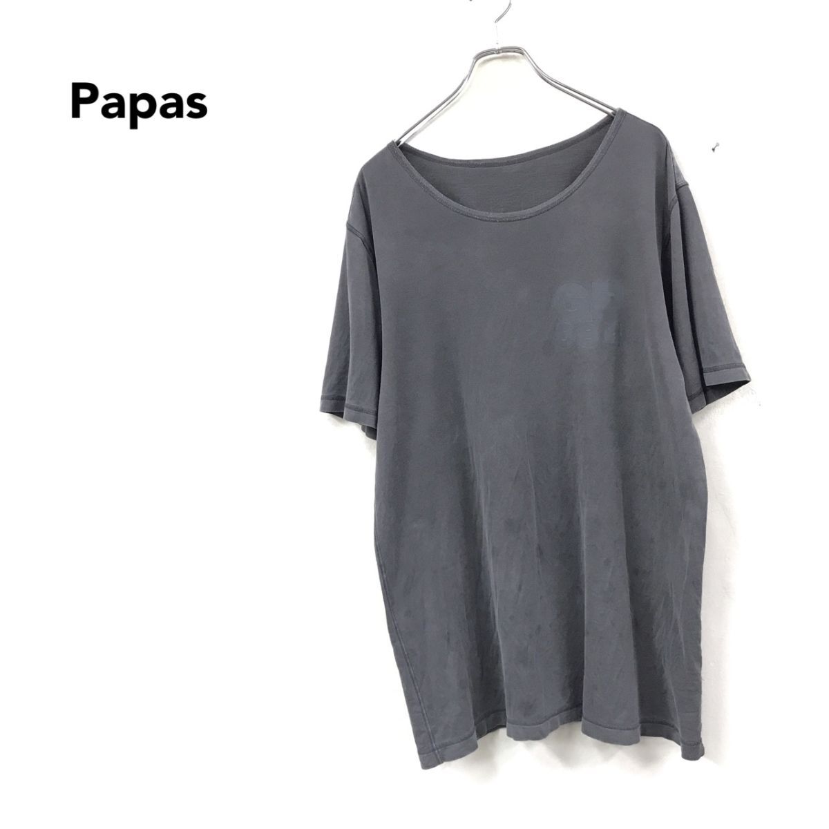- 2H1223-D◆ papas パパス 半袖Tシャツ カットソー 大きめ ◆ sizeL グレー コットン 古着