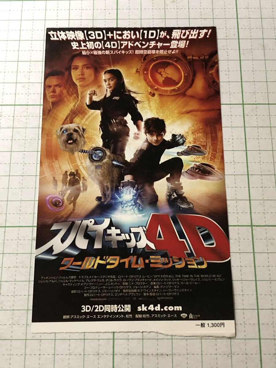 - 映画半券 2011年公開 スパイキッズ4D ワールドタイム・ミッション 出演者 ジェシカ・アルバ