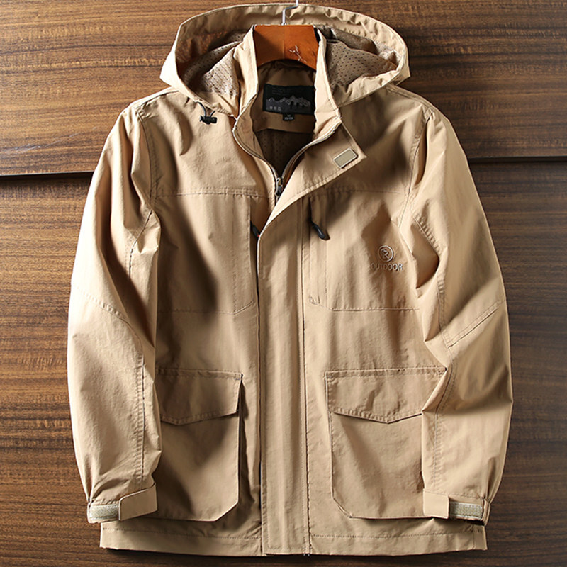 - W1010-XL/カーキ 軽量&通気!新品 メンズ フード付き ジャケット アウトドアパーカー 防水防風 撥水 春秋 ビジネス カジュアル アウター