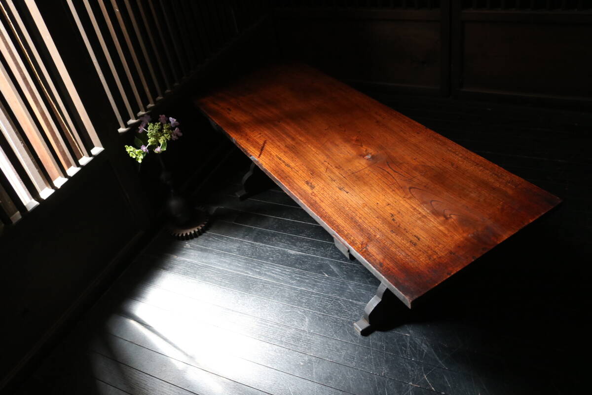- 【伊董】C114.古民芸!味トロトロ!用の美!ビッシリとついて黒々とした煤味が古さを醸し出す座机山形県最上地方文机江戸 #寺子屋机 #経机