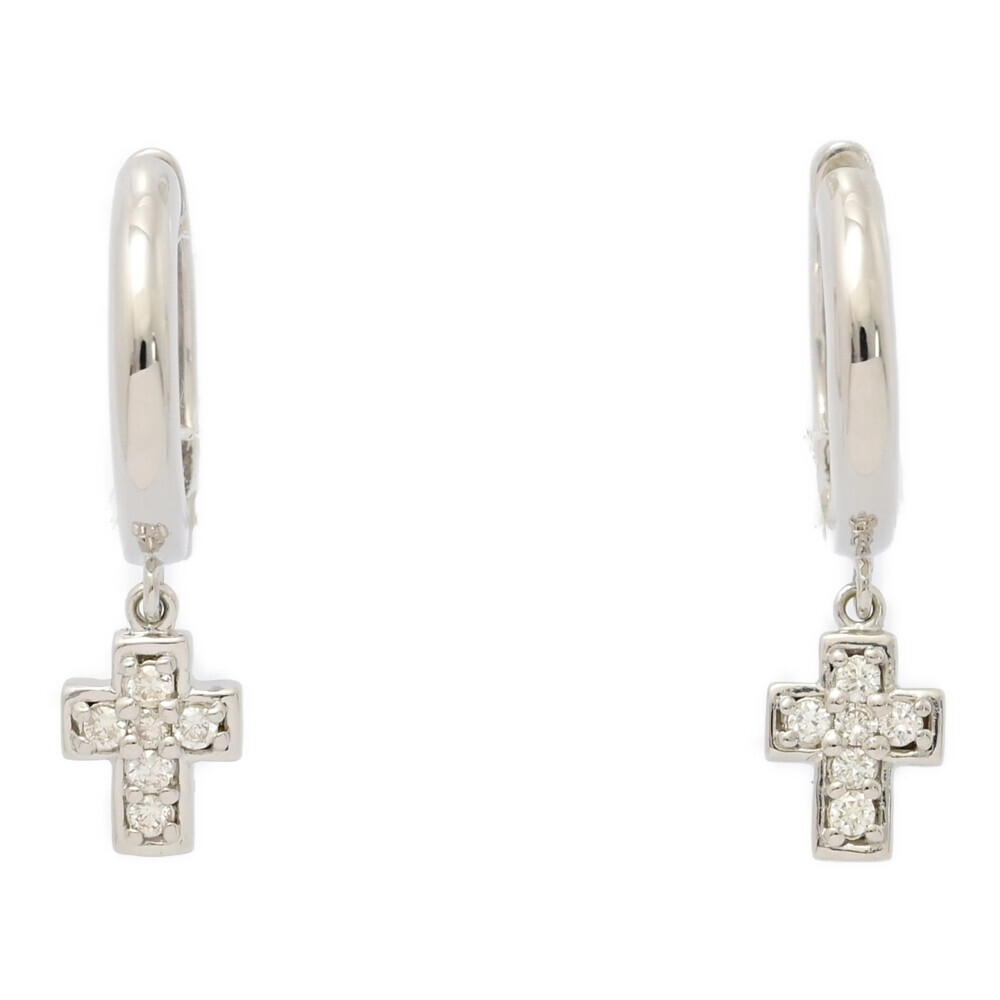 > 0.06ct/FD:0.06ct/ピアリング クロスモチーフ 6P・ダイヤモンド フープ イヤリング イヤーカフ/K14WG/585-2.6g/ホワイトゴールド■584811